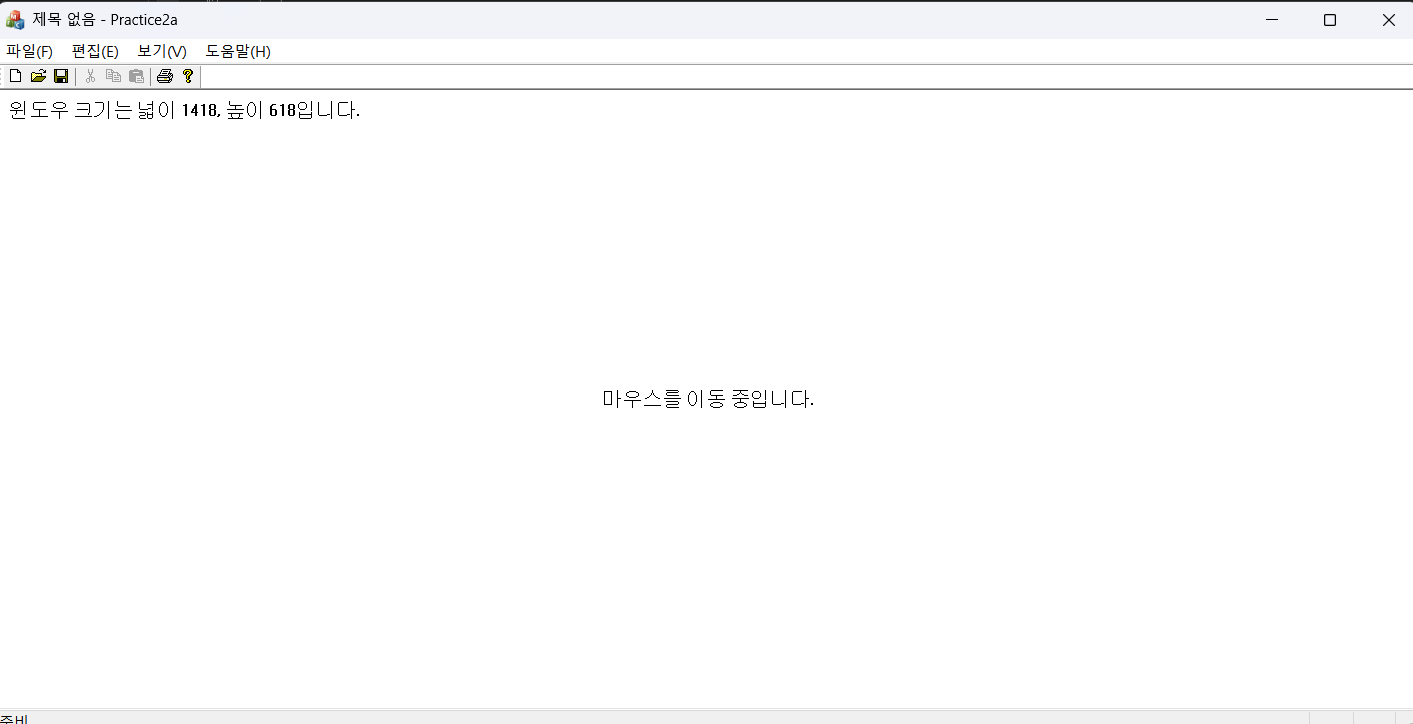 - 마우스 이동, 마우스 왼/오 버튼 클릭, 키보드 클릭, 윈도우 크기를 출력하는 실습