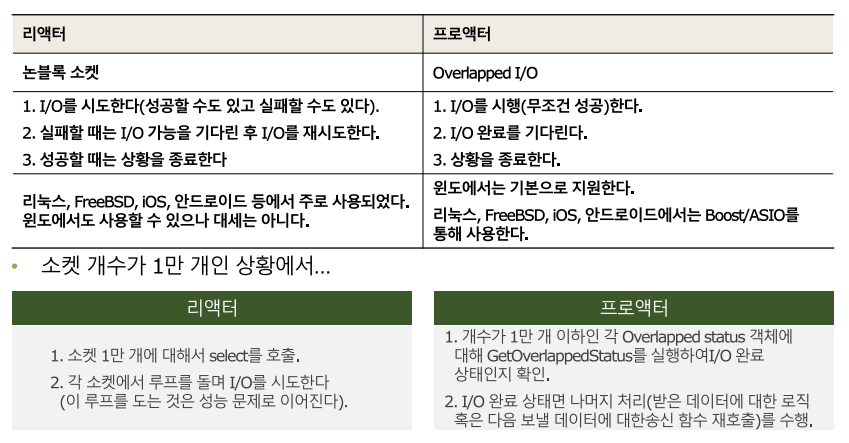 : 논블록 소켓을 뒤늦게.. 라는 의미의 리액터 패턴이라고 함, Overlapped I/O는 미리.. 라는 의미의 프로액터 패턴이라고 함