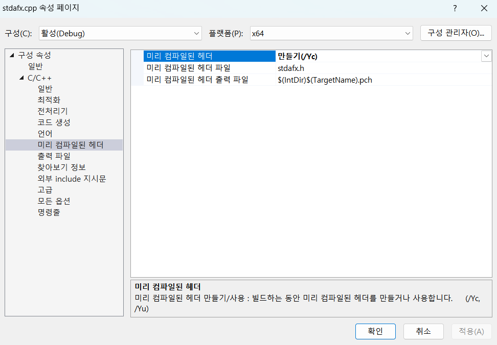 2) stdafx.cpp 파일 추가 후 헤더 include