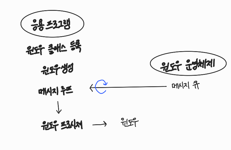 - 윈도우 클래스를 시스템에 등록 (Register Window Class)