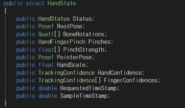 그러면 Hand 관련 API에서 Transform 정보를 받아와야했고, 그 정보는 OVRHand의 PointerPose였다.